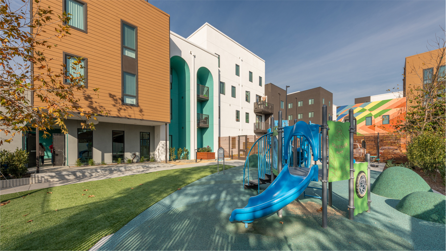 Archways Santa Ana is an integrated community consisting of 85 affordable homes serving large families and formerly homeless individuals.